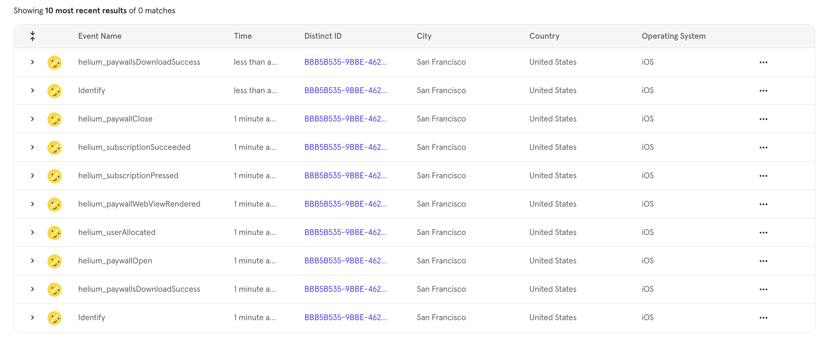 You can also track events from the SDK via the PaywallDelegate or lifecycle methods in each framework. View our SDK quickstarts for more information.iOS